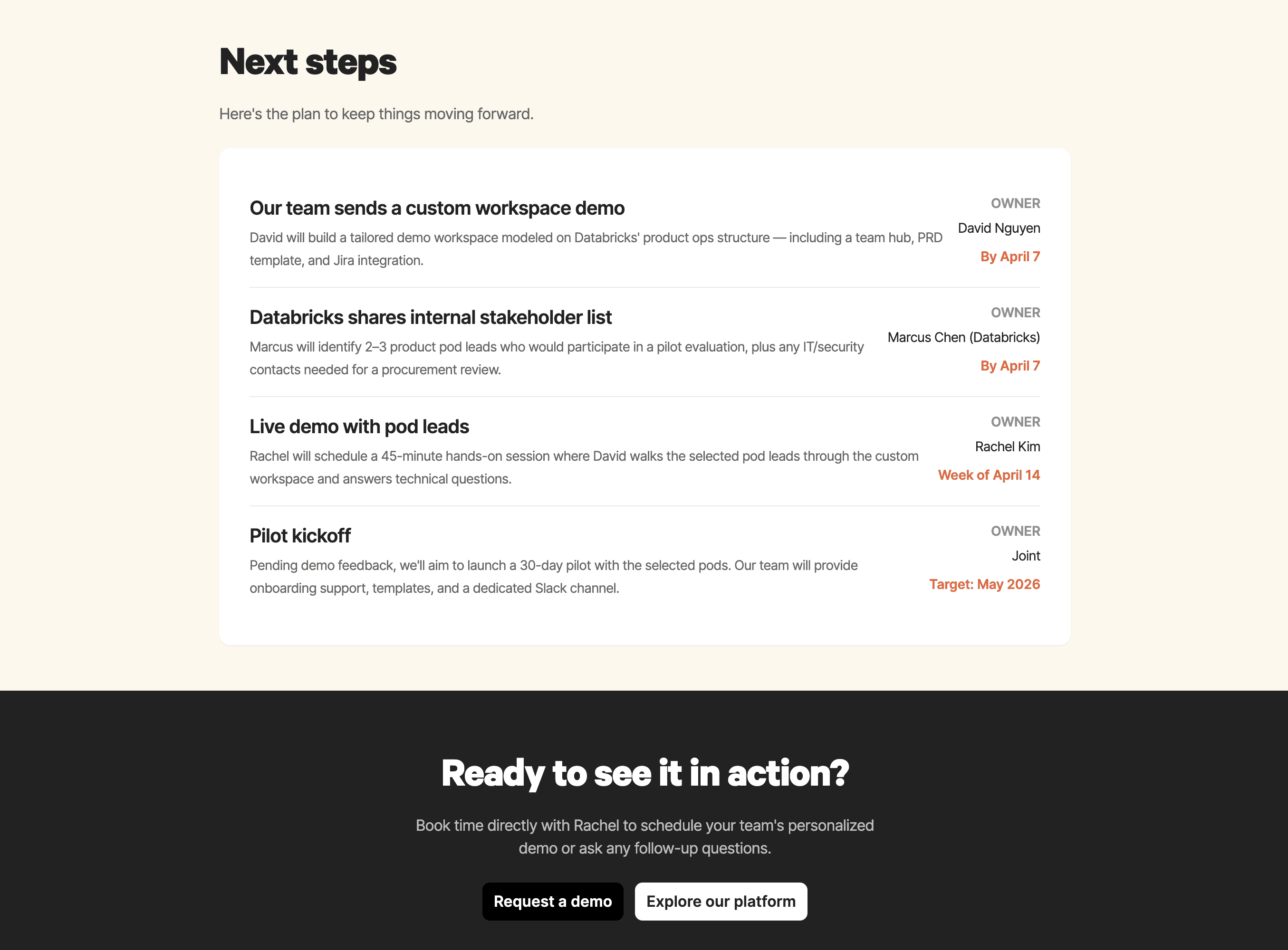 Custom materials for every deal used to requires an army. Not any more! One person with a Mutiny agent can accomplish more in an afternoon than a team in two weeks.