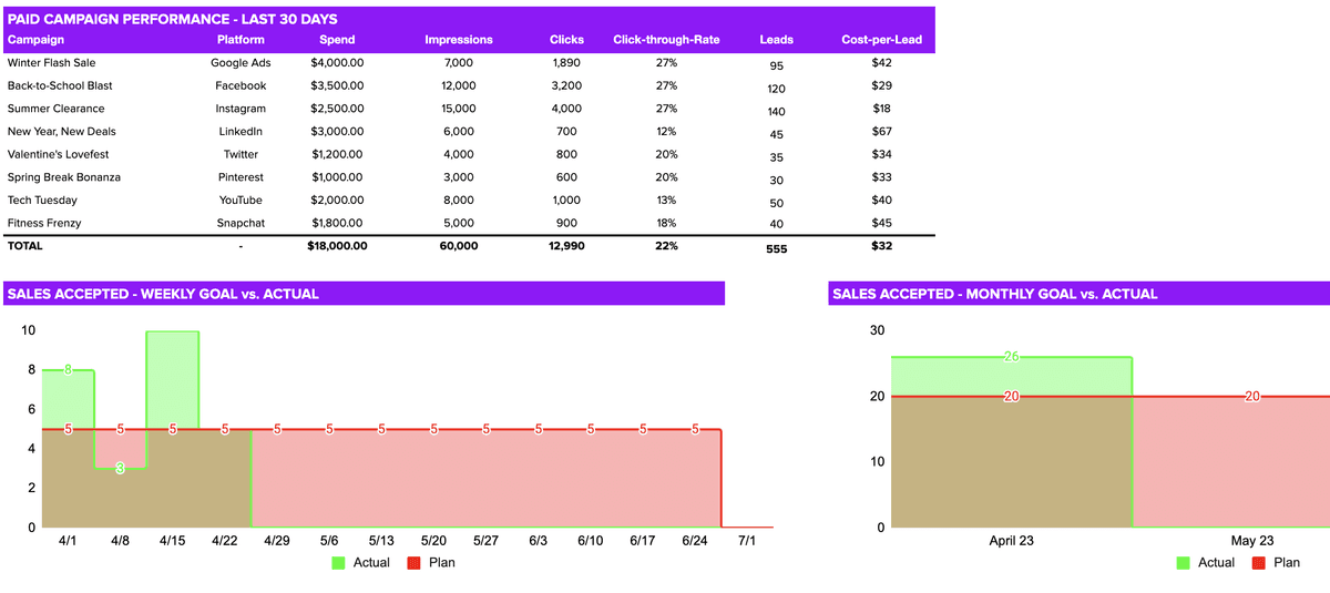 Curious how other B2B marketers are measuring the success of their paid marketing program? We built a template that gives you a full view into the health of your ads. Sourced from top B2B marketers in the M2 Community.