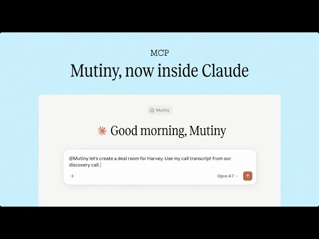 Today we're launching the Mutiny MCP server. Sellers and marketers can now create fully on-brand ABM campaigns, deal rooms, pitch decks, business cases, and personalized outbound without ever leaving Claude or ChatGPT. Every asset is built on-brand, fully editable, and tracks who viewed it.