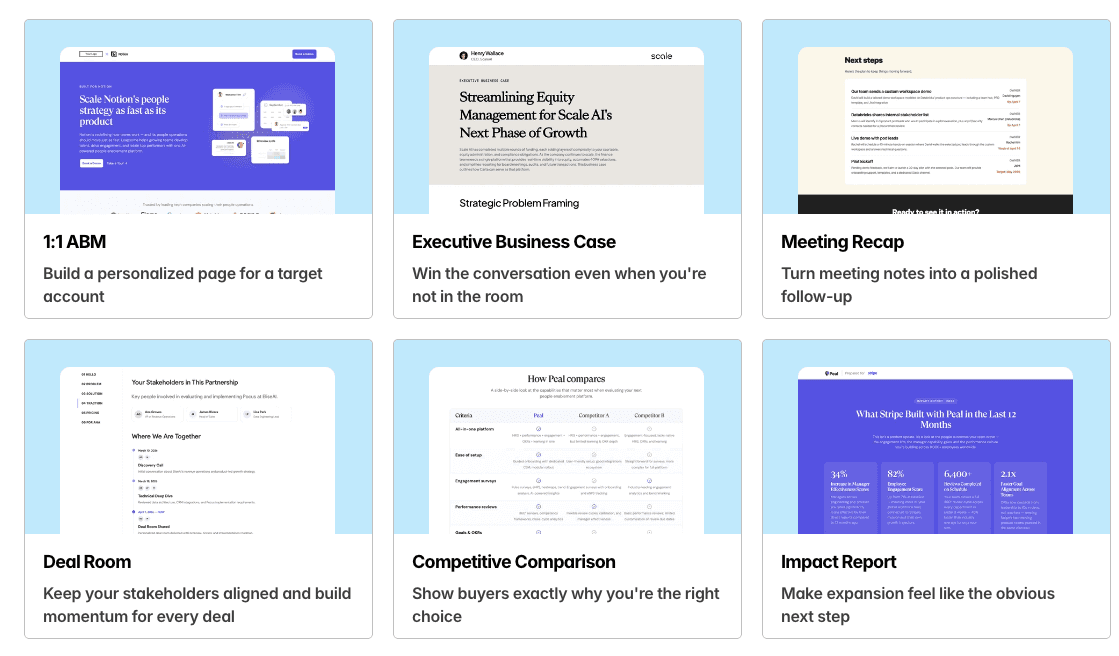 Our agent has analyzed top-performing GTM assets and frameworks and built templates for every deal stage. We'll automatically apply your brand and data so you get a polished, ready-to-send asset in minutes instead of starting from scratch.