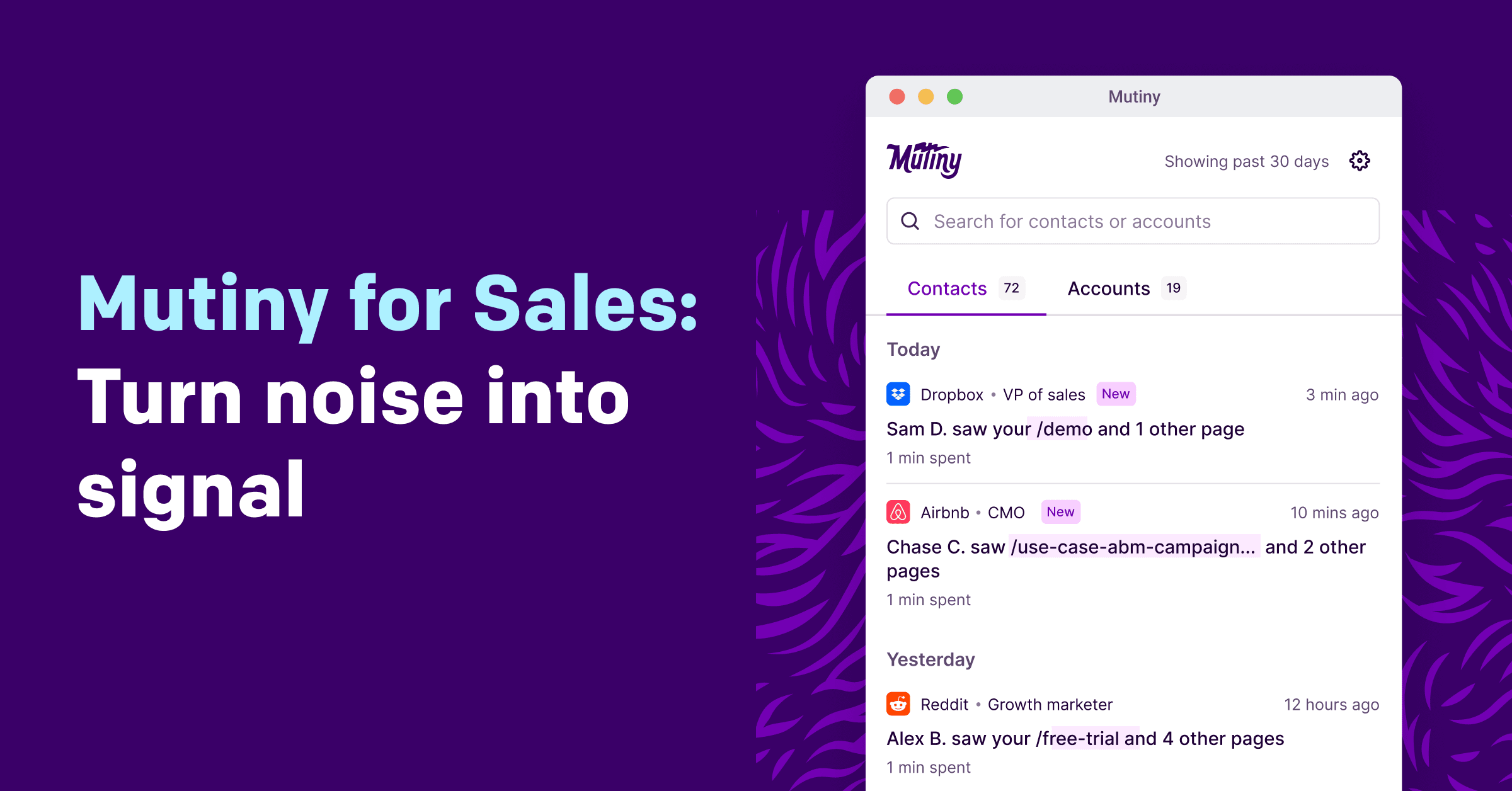 Today, we’re excited to bring more of the power of Mutiny to Sales teams with our new web extension that helps Sales identify, understand, and prioritize high-intent contacts.
